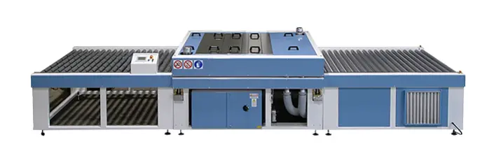 Une laveuse horizontale est une machine utilisée pour nettoyer et sécher des feuilles de verre plat pendant qu’elles se déplacent horizontalement sur des rouleaux convoyeurs, couramment utilisé avant les processus de trempage ou de laminage.