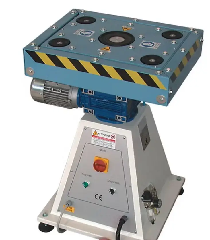 Cette machine est utilisée dans la fabrication des unités scellées pour déplacer semi-automatiquement les panneaux lors du scellement final, les faire pivoter grâce à une table rotative, et les manipuler avec précision à l’aide de 5 ventouses indépendantes.